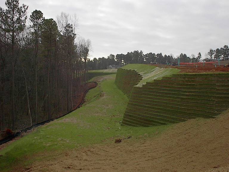 - Apoyo a la Vegetación: Las pruebas de vegetación muestran que los geosintéticos Miramesh® funcionan mejor que las geomallas biaxiales y los geotextiles al proporcionar una plataforma adecuada para el crecimiento de las plantas. La apertura única de la geomalla permite la retención de las partículas del suelo, al tiempo que fomenta el crecimiento de la vegetación.
